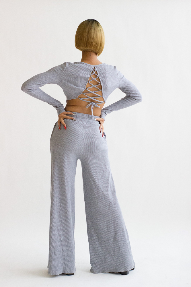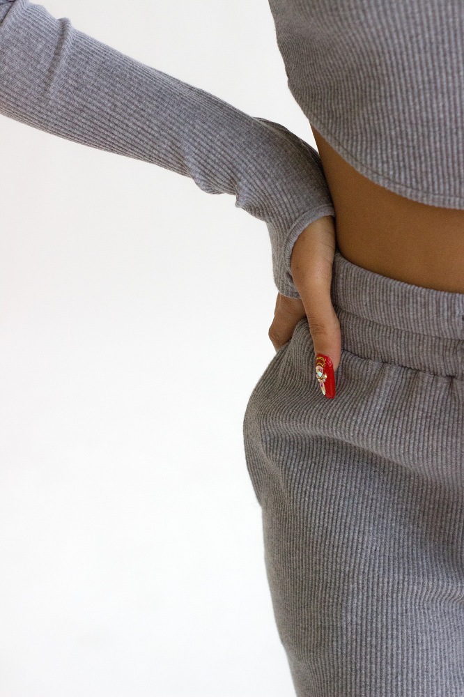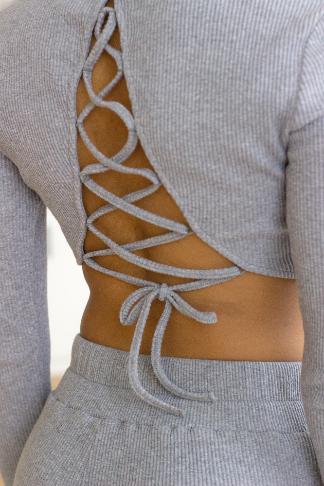 ADOUR, the two-piece jogger set features a grey rib knit Selene top that breaks the burden of bras with a stretch lace-up back that can adjust for bust support. The grey ribbed joggers feature an extra drawstring to adjust for your comfort. ADOUR’S versatility is perfect for every woman’s 24/7 lifestyle.